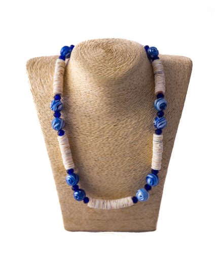 Handcrafted with vibrant stone-chip beads.